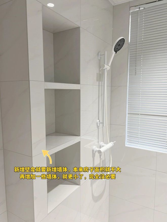 但是现在的住宅,墙体都是固定的,不能随意改变结构,想要做壁龛就只能“再造”。新增壁龛,就要新增墙体,本来房子面积就不大,再增加一些墙体,就更小了,完全没必要。