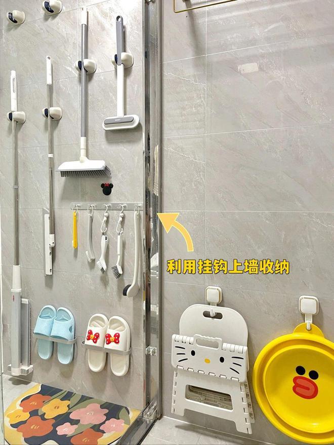建议:卫生间能安装免打孔置物架,用来收纳洗护用品。也可以用挂钩做上墙收纳,更实用。