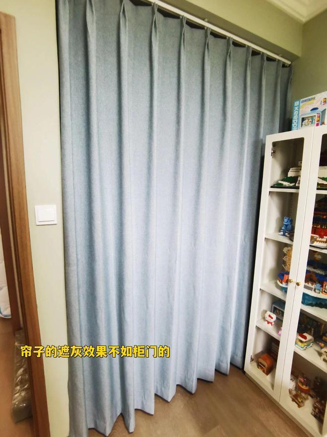 网上很多砌墙衣柜是用帘子代替柜门,看上去很廉价,而且帘子的遮灰效果肯定是不如柜门的,但是一旦选择了柜门,预算肯定又涨上去了。