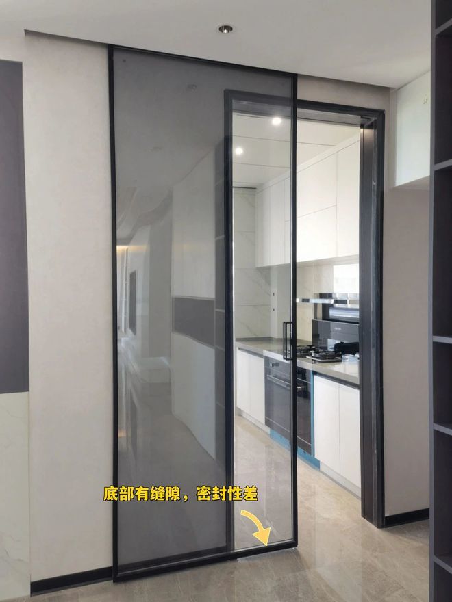而且,吊轨门的密封性远不如地轨门,为了尽最大可能避免门摩擦到地面,一般会在底部悬空1cm,油烟、冷空气还是会飘进屋内其它房间。