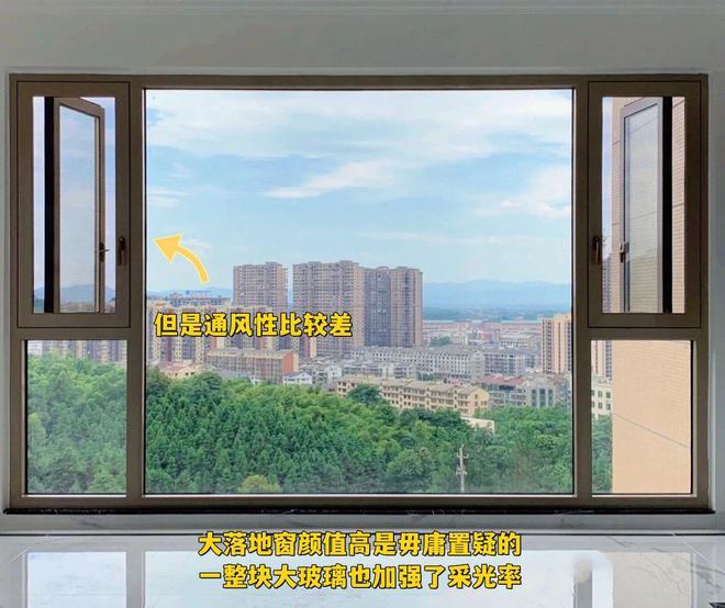 落地窗中间的大玻璃,是完全封闭的,能够用来通风的区域也就变少了。而且一整面大玻璃,可以说毫无私密性可言,很没有安全感。