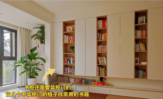 建议:书柜还是要装柜门的,可以适当留几个不装柜门的格子来放常用的书籍,方便拿取。